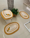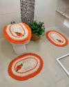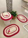 Jogo de Banheiro em Crochê Artesanal 3 Peças Barbante Cru com Detalhe Colorido e Aplicação de Flor