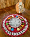 🌸 Bandeja Redonda de Crochê com Detalhes de Flores Coloridas – Artesanal e Exclusiva 🌸